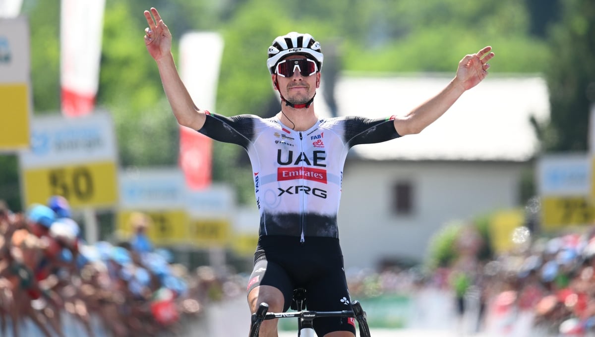 Así es. Al más puro 'estilo Pogacar' se ha impuesto el portugués en una jornada disputada entre Heiden y Piuro, con un recorrido de 193.2 km, y en la que mantuvo el maillot amarillo el francés Romain Grégoire (Groupama FDJ).