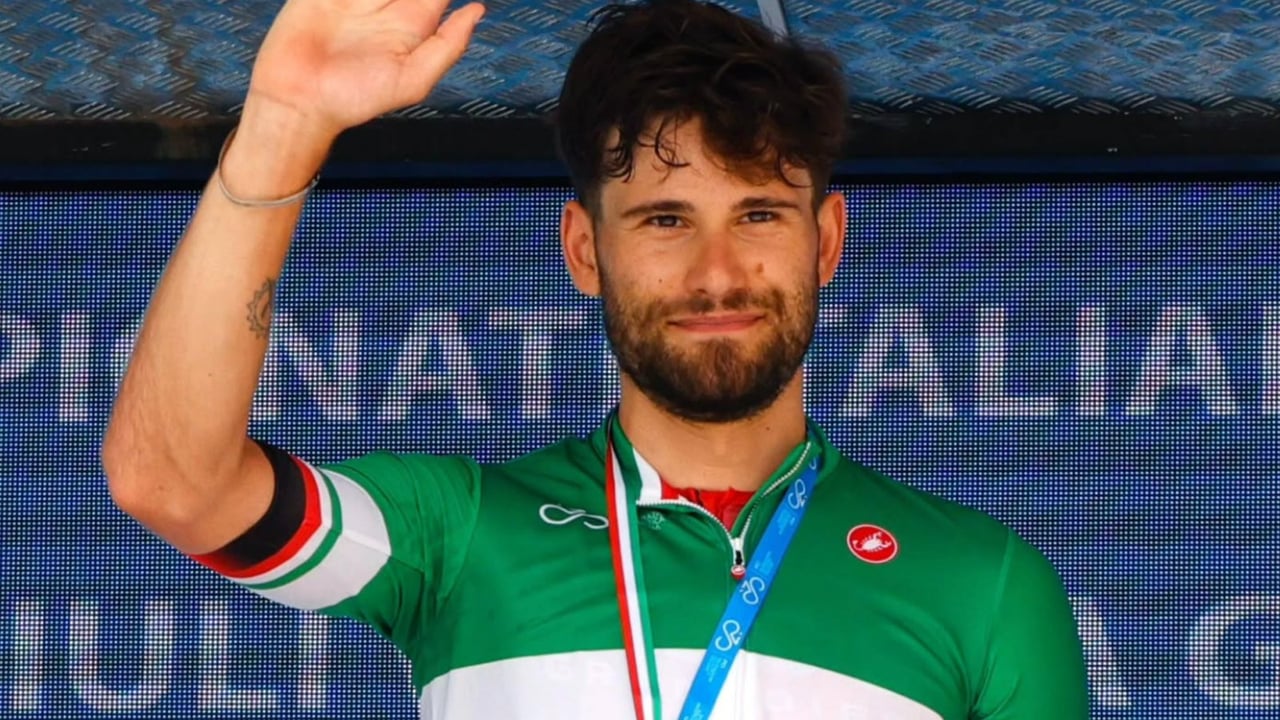 Pippo Ganna, portando el maillot de campeón italiano contra el crono.@gannafilippo