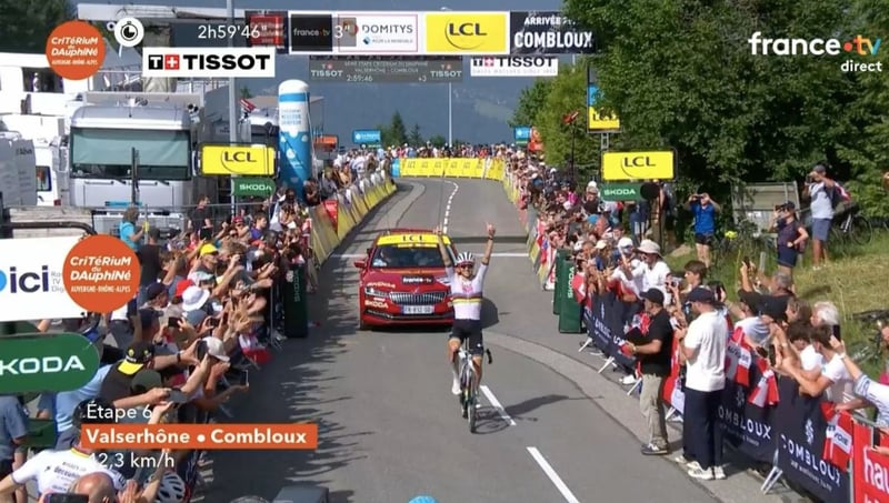 Pogacar necesitó de 2h59:46 para culminar los 126.7 kilómetros entre Valserhône y Combloux. Una etapa corta, pero con cinco puertos de montaña que, como quedó demostrado, hicieron daño y marcaron diferencias entre los favoritos. El ciclista esloveno del UAE pasa ahora a liderar el Criterium del Dauphiné 2025 gracias a los 1:50 que sacó en meta al hasta ahora líder Remco Evenepoel. Vingegaard y Lipowitz completan provisionalmente el podio.