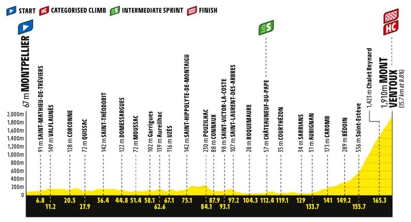 16ª etapa: Martes 20 julio. Montpellier - Mont Ventoux, 172 kms.