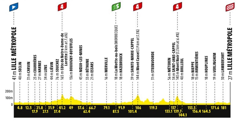 1ª etapa: Sábado 5 julio. Lille - Lille, 185 kms. Llana.