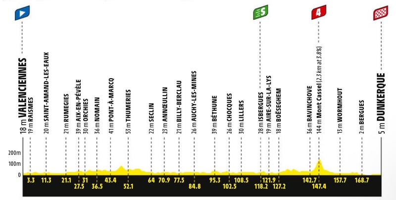3ª etapa: Lunes 7 julio. Valenciennes - Dunkerque, 178 kms.