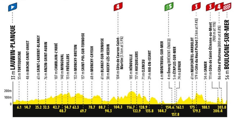 2ª etapa: Domingo 6 julio. Lauwin-Planque - Boulogne-Sur-Mer, 212 kms.