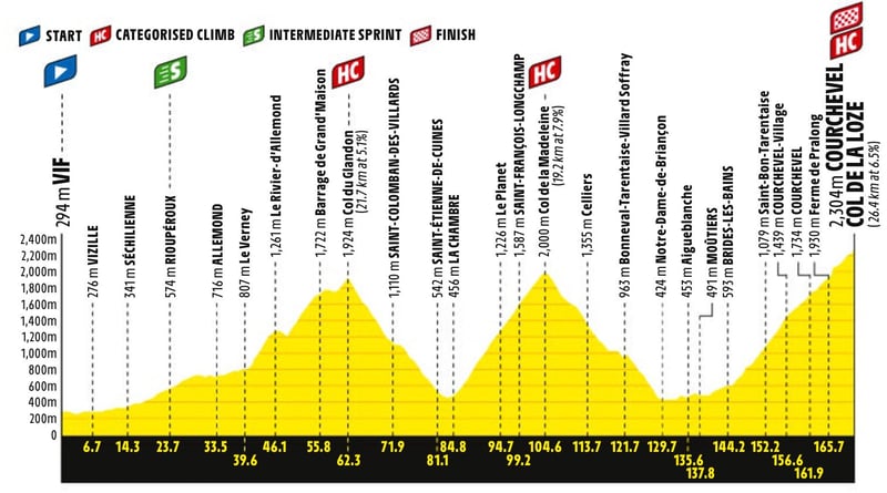 18ª etapa: Jueves 22 julio. Vif - Col de la Loze (Courchevel), 171 kms.