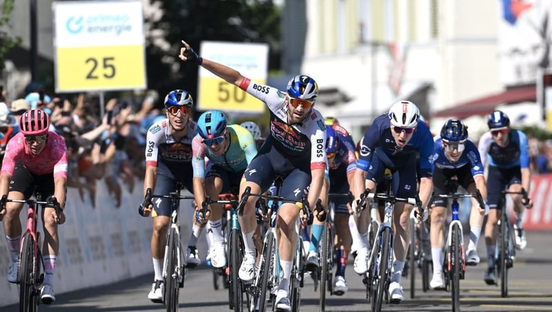 Ahí, en las calles de Neuhausen am Rheinfall, el más rápido fue el ciclista del Red Bull-Bora Hansgrohe Jordi Meeus, que se hizo con la sexta etapa antes de que la montaña y el crono dicten sentencia en las dos últimas jornadas de la ronda suiza. El ciclista belga aprovechó el trabajo de sus compañeros y, en especial, de un Van Poppel que lanzó el sprint para que Meeus lo rematase. Tras él entraron en meta el italiano Davide Ballerini (Astana) y el británico Lewis Askey (Groupama FDJ).