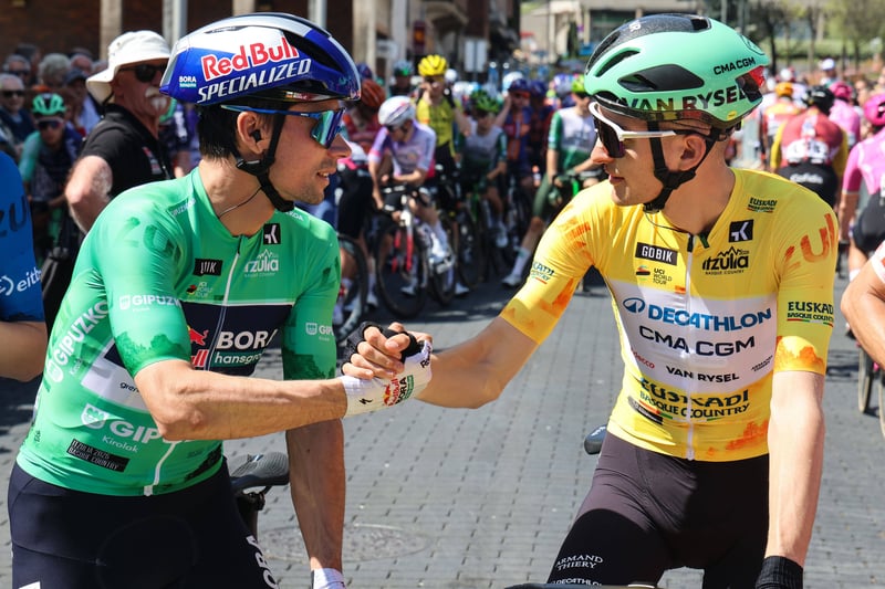 El francés logró el triplete en la 65 edición de la Itzulia ganando en un duelo al esprint con el alemán Florian Lipowitz la quinta etapa