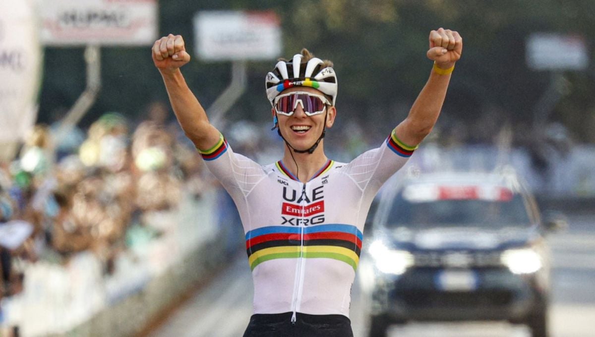 A poco más de 20 kilómetros para la línea de meta, Pogacar puso la directa y sumó su 19ª victoria de la temporada por delante de un grupo de corredores, entre los que se encontraba el también campeón del mundo Alaphilippe o su compañero Isaac del Toro, que sólo pudieron llegar a 45 segundos del esloveno.