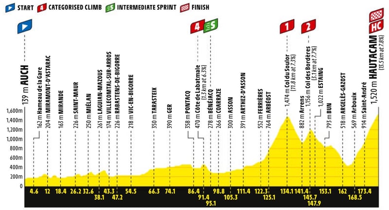 La 12ª etapa del Tour de Francia 2025 supone el inicio de la alta montaña y, por tanto, la primera gran prueba para los favoritos en la pelea por el Tour de Francia. Con 181 kilómetros de recorrido, los corredores deberán enfrentarse a 45 kms finales auténticamente infernales. Primero se verán las caras con el Col du Soulor por Ferrière (11,9 km al 7,3% de pendiente media), seguirán con el Col de Bordères (3,1 km al 7,7%) y cerrarán el círculo ascendiendo al m��tico Hautacam, el cual tiene 13,6 km de longitud y una pendiente media del 7,8%.