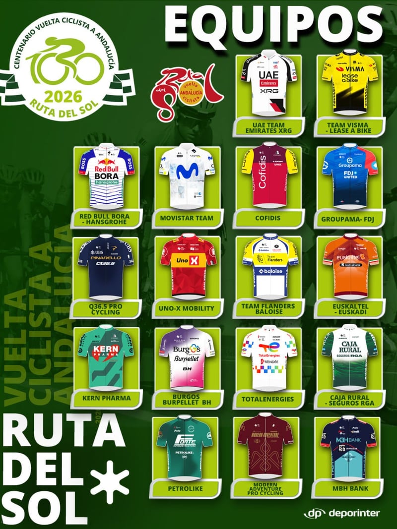La Vuelta Ciclista a Andalucía/Ruta del Sol tendrá un cartel de mucho nivel en su edición 2026 después de que haya cerrado su participación y haya confirmado la presencia de algunas de las mejores escuadras del World Tour como el UAE Team Emirates, el Visma/Lease a Bike, el Red Bull/BORA/Hansgrohe o los españoles del Movistar Team.