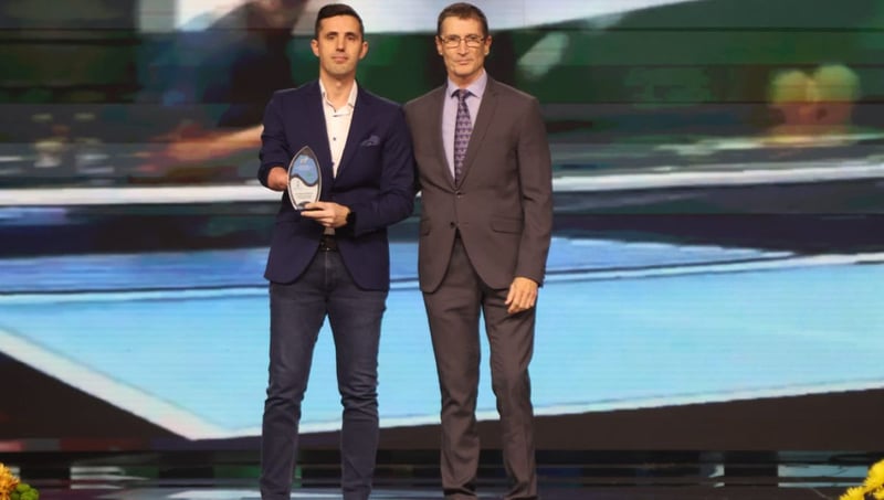 La Gala siguió con la entrega al mejor Entrenador que reconoció a Jacinto Garzón, entrenador de la marchadora María Pérez y del que hizo entrega Alfonso Escribano, presidente de la Confederación Andaluza de Federaciones Deportivas