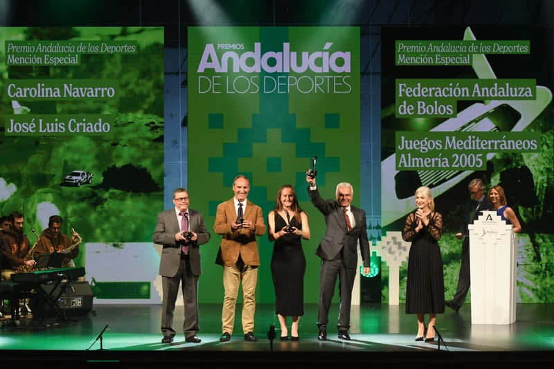 Finalmente, el jurado ha otorgado cinco menciones especiales, a la jugadora de pádel malagueña Carolina Navarro, al piloto jiennense José Luis Criado, al jinete sevillano Luis Astolfi, a la Federación Andaluza de Bolos y a los Juegos Mediterráneos de Almería 2005, cuando se han cumplido el veinte aniversario del histórico campeonato.
