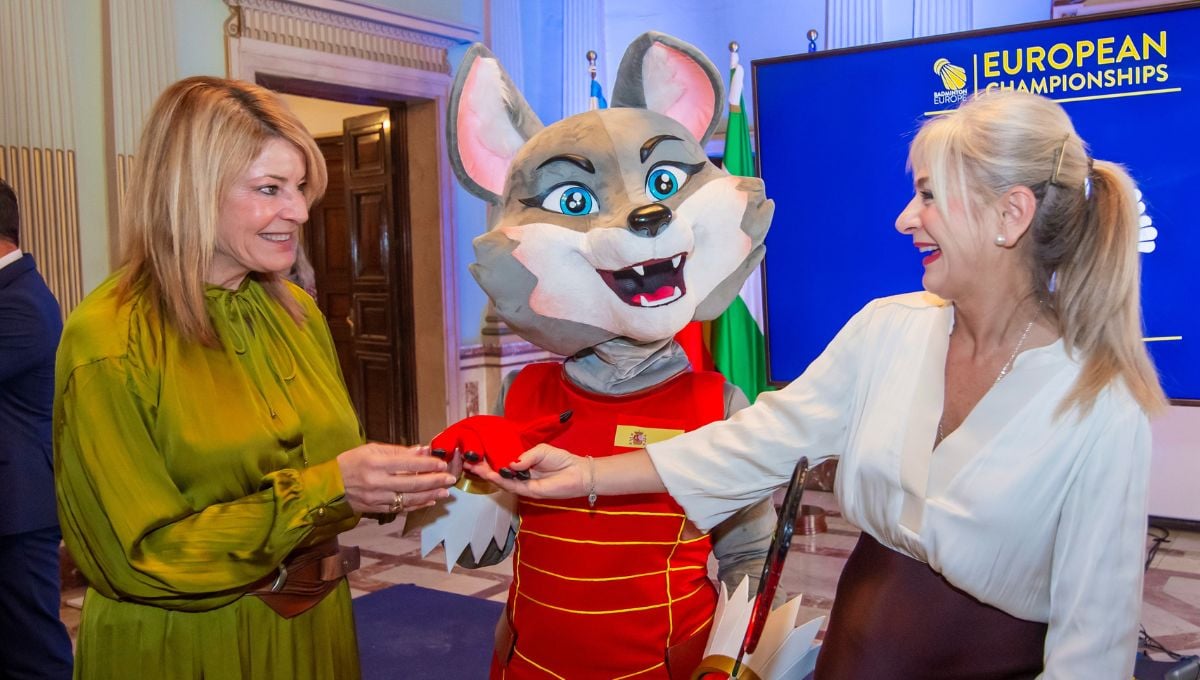 Durante el acto también se ha presentado la mascota del campeonato europeo, que representa a una loba, animal con el que Carolina Marín siempre se ha identificado mucho al representar garra, fuerza, lo que siempre ha caracterizado también a la deportista onubense. Va vestida de forma muy parecida a la vestimenta que lució la jugadora andaluza en la final de los Juegos Olímpicos de Río 2016, en la que se proclamó campeona, y su nombre es Luz, que se identifica también con la Costa de la Luz onubense y la luz de Huelva.