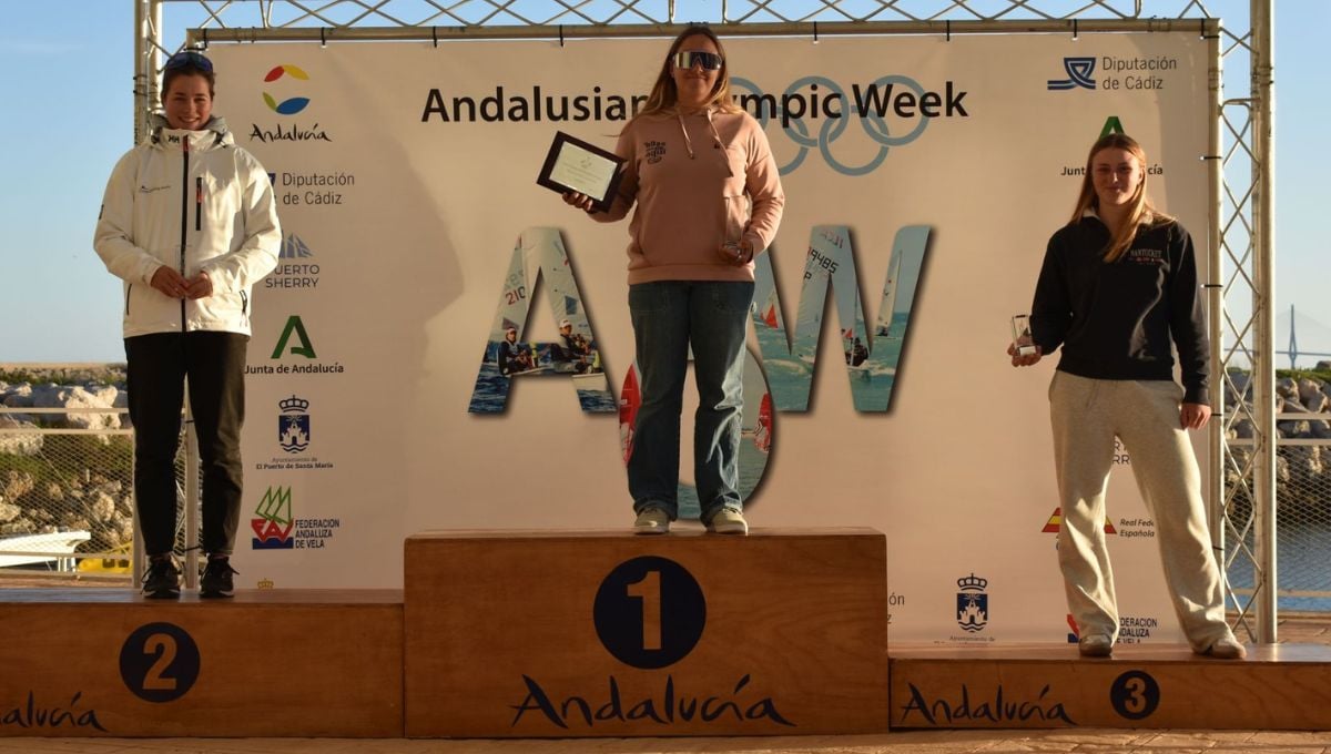 Pilar Lamadrid, en el podio de IqFoil de la Semana Olímpica AndaluzaED