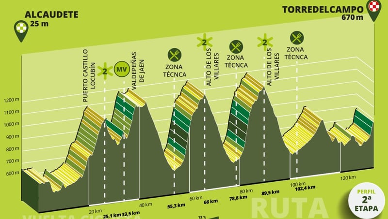 La segunda etapa es algo más corta (133,2 km), pero también muy exigente y llevará a los ciclistas a la provincia de Jaén.