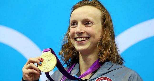 La nadadora Katie Ledecky portando su medalla de oro en los Juegos Olímpicos.R.S.