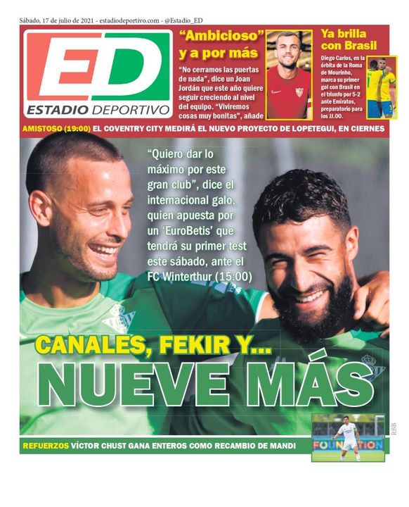 La portada de ESTADIO Deportivo para el sábado 17 de julio de 2021: