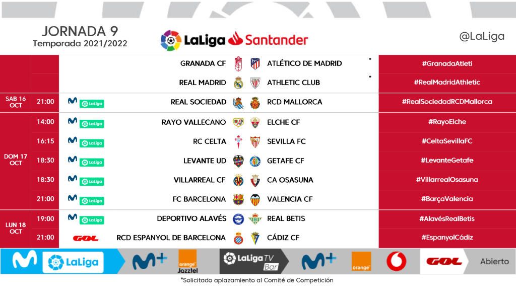 LaLiga ha dado a conocer el día y la hora en los que se disputará la jornada 9 del torneo de regularidad.