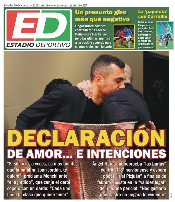 “El silencio, a veces, es más bonito que la palabra; Joan Jordán, te quiero”, proclama Monchi ante “el agredido”, que zanja el derbi copero con un dardo: “Cada uno tiene la clase que quiere tener”