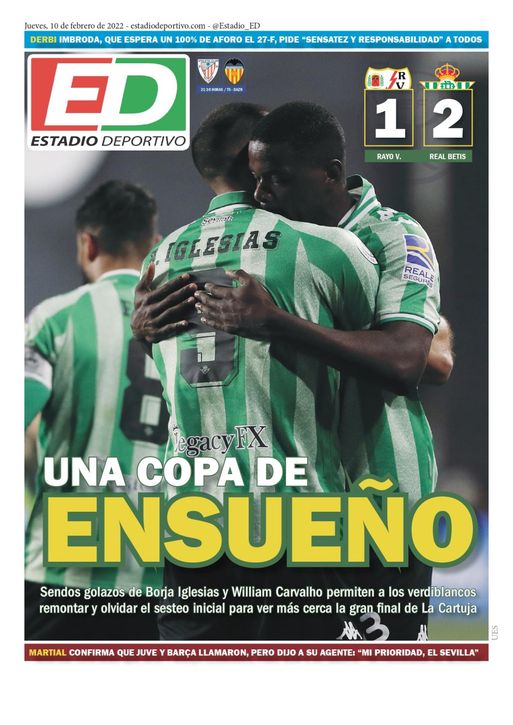 La portada de ESTADIO Deportivo para el jueves 10 de febrero de 2022: