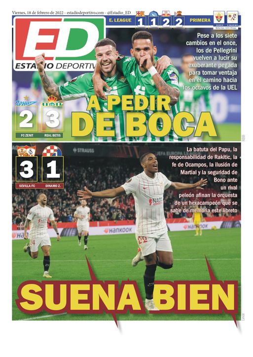 La portada de ESTADIO Deportivo para el viernes 18 de febrero de 2022: