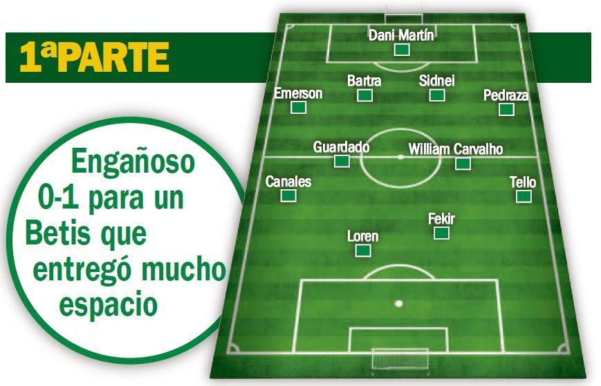 Pudo Rubi introducir modificaciones importantes en un once en el que ya participaron Guardado y Canales -Mandi aún esperó en el banquillo- y que se dibujó en un 4-4-2 con el cántabro ocupando el carril derecho. Dispuso el técnico un bloque muy bajo con el que regaló mucho terreno al Barcelona.