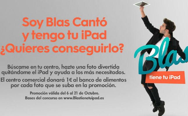 El Centro Comercial y de Ocio Alcampo Tamarguillo, situado en Ronda del Tamarguillo 27 en Sevilla, mediante la promoción "Blastienetuipad", sorteará entre sus clientes un Ipad. Para conseguirlo tendrán derecho a participar en la promoción todas aquellas personas mayores de edad, que se hagan una foto con el doble de cartón de Blas Cantó intentado quitarle su Ipad. Para participar el cliente deberá entrar en la web del concurso www.blastienetuipad.es y registrarse del 6 al 21 de octubre.