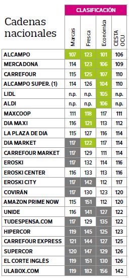 Aunque la fama ya le precede, se ha convertido en costumbre que Alcampo quede el primero en este ranking, tiene muchísimo mérito lograrlo porque la OCU ha calculado el nivel de precios de 1.176 establecimientos (22 de ellos online) repartidos por 64 ciudades españolas. Según indica la propia organización en su informe, “no hace falte que se patee la ciudad buscando (…) los precios más baratos. La OCU ya lo hace por usted y le muestra dónde llenar la cesta de la compra al menor precio posible”.