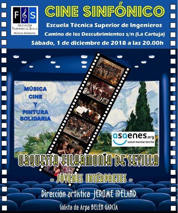 La Asociación de Filarmonía de Sevilla celebra este próximo sábado 1 de diciembre en la Escuela Técnica Superior de Ingenieros una nueva edición de la Orquesta Filarmonía de Sevilla, en la que se combinarán diferentes artes como la música, el cine y la pintura solidaria.