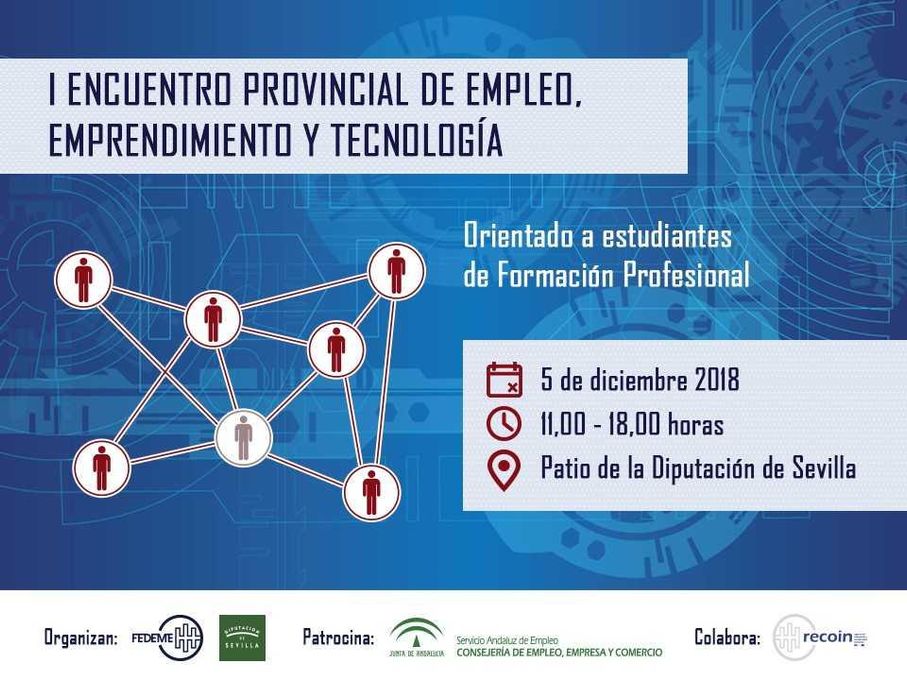 La Federación de Empresarios del Metal, FEDEME, y la Diputación de Sevilla, a través del IES Virgen de los Reyes, organizan el próximo miércoles 5 de diciembre el I Encuentro Provincial de Empleo, Emprendimiento y Tecnología, evento orientado a los futuros empleados provenientes de los Grados de Formación Profesional que se celebrará en el propio patio de la Diputación.