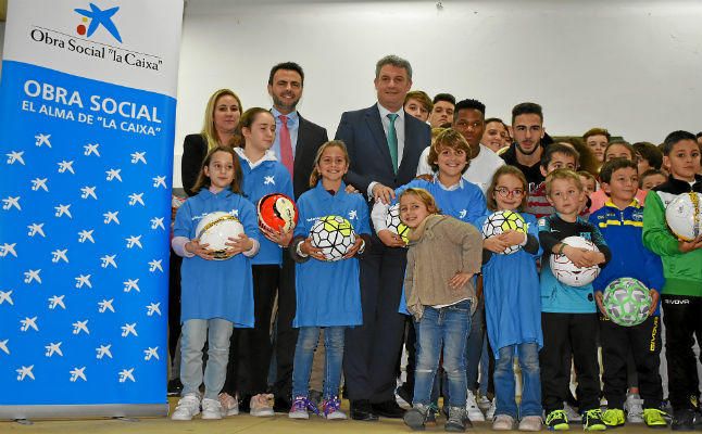 CaixaBank y la Fundación 'la Caixa', en colaboración con la Escuela de Fútbol Peloteros y el Ayuntamiento de Aguadulce, han entregado 350 balones a niños y niñas de la Sierra Sur en un acto celebrado en la Caseta Municipal de Aguadulce.