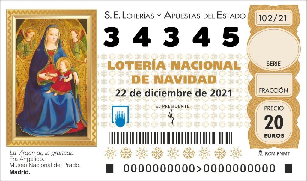 El número 34.345 ha resultado agraciado con el séptimo de los ocho quintos premios del Sorteo Extraordinario de Lotería de Navidad, dotado con 60.000 euros a la serie. El número fue cantado a las 12:45 horas en el tercer alambre de la octava tabla y se ha vendido en la administración 131 ubicada en la estación de Chamartín de la capital; en el centro comercial Madrid Sur de la avenida Pablo Neruda y en el centro comercial Hipercor de Pozuelo de Alarcón. Todos ellos han vendido una serie.La más agraciada con este quinto ha sido la localidad salmantina de Peñaranda de Bracamonte, con 130 series en la administración número 2. En segundo lugar, se sitúa Huércal de Almería (Almería), con 30 series en la administración número 1. Además, este premio, el penúltimo en salir, ha dejado pellizcos en otras localidades de Almería, Asturias, Vizcaya, Burgos, Cantabria, Castellón, Madrid, Málaga, Toledo y Valladolid.