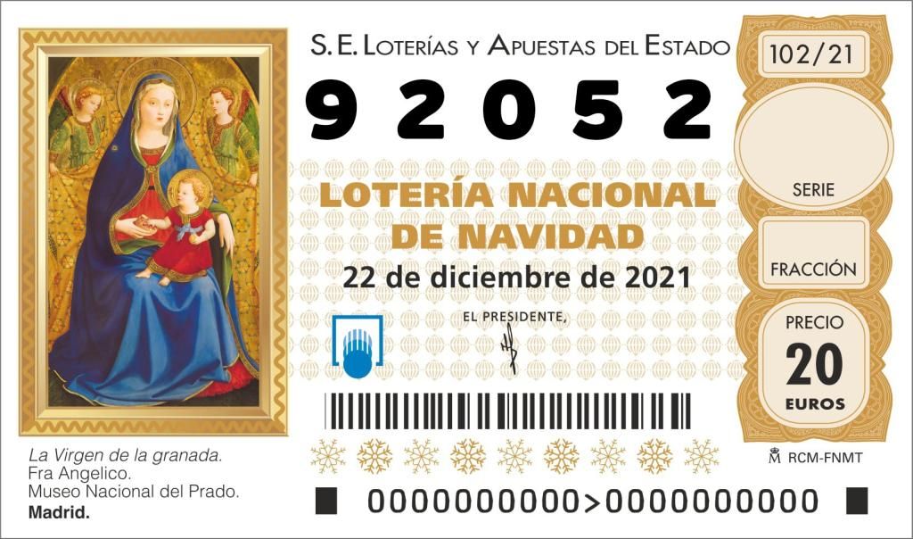 El número 92.052 ha resultado agraciado con uno de los ocho quintos premios del Sorteo Extraordinario de Lotería de Navidad, dotado con 60.000 euros a la serie. El premio más madrugador de este sorteo ha sido muy repartido y ha recaído en administraciones de Barakaldo (Vicaya), con 130 series, y Daimiel (Ciudad Real), con 30. También ha llegado un pellizco de este primer quinto a Benidorm (Alicante), Madrid, Algeciras (Cádiz), Comprodon (Gerona), Jaén, San Pedro del Pinatar (Murcia), Manises (Valencia), Granadilla de Abona (Santa Cruz de Tenerife), Cádiz, Granada, O Porriño (Pontevedra), Canet de Bernguer (Valencia).El número fue cantado a las 09:23 horas en el quinto alambre de la primera tabla. Los niños Yanisse Alexandra Soto Rivera y Luis Alcides Paniagua, cantaron número y premio, y Natalia Rodríguez Liriano y Santa Daniela de León Santa, extrajeron las bolas.