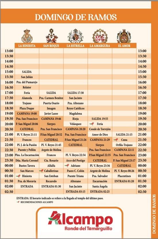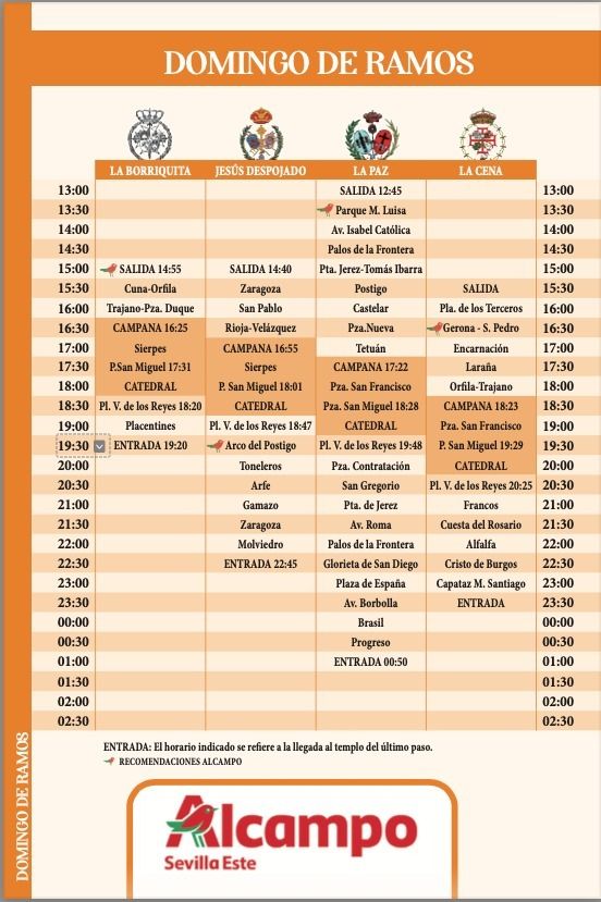 Itinerarios y horarios para el Domingo de Ramos en Sevilla