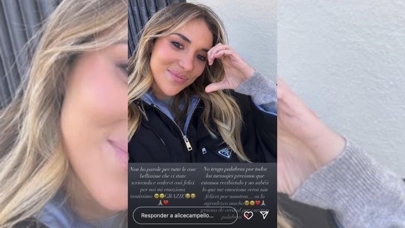 La italiana publicó una foto en la que se le ve sonriente y haciendo el gesto del corazón con una mano, mientras debajo escribía: "No tengo palabras para todos los mensajes preciosos que estamos recibiendo y no sabéis lo que me emociona veros tan felices por nosotros... os lo agradezco mucho. Gracias de verdad por vuestras palabras", texto que también publicó en su idioma natal.