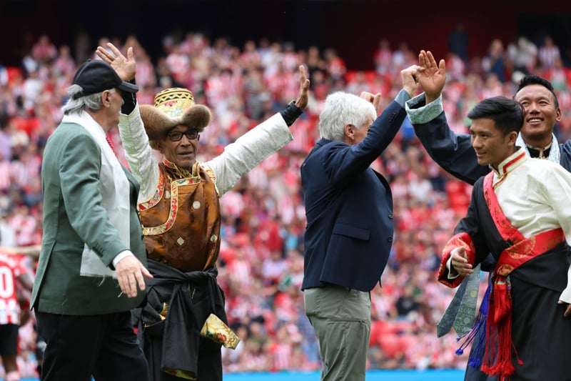 Durante el acto, los montañeros fueron aplaudidos prácticamente por todo el estadio y tras hacer el saque de honor sonó por la megafonía 'Ikusi Mendizaleak', tradicional canción vasca sobre la montaña y los montañeros, que fue entonada por buena parte del público.