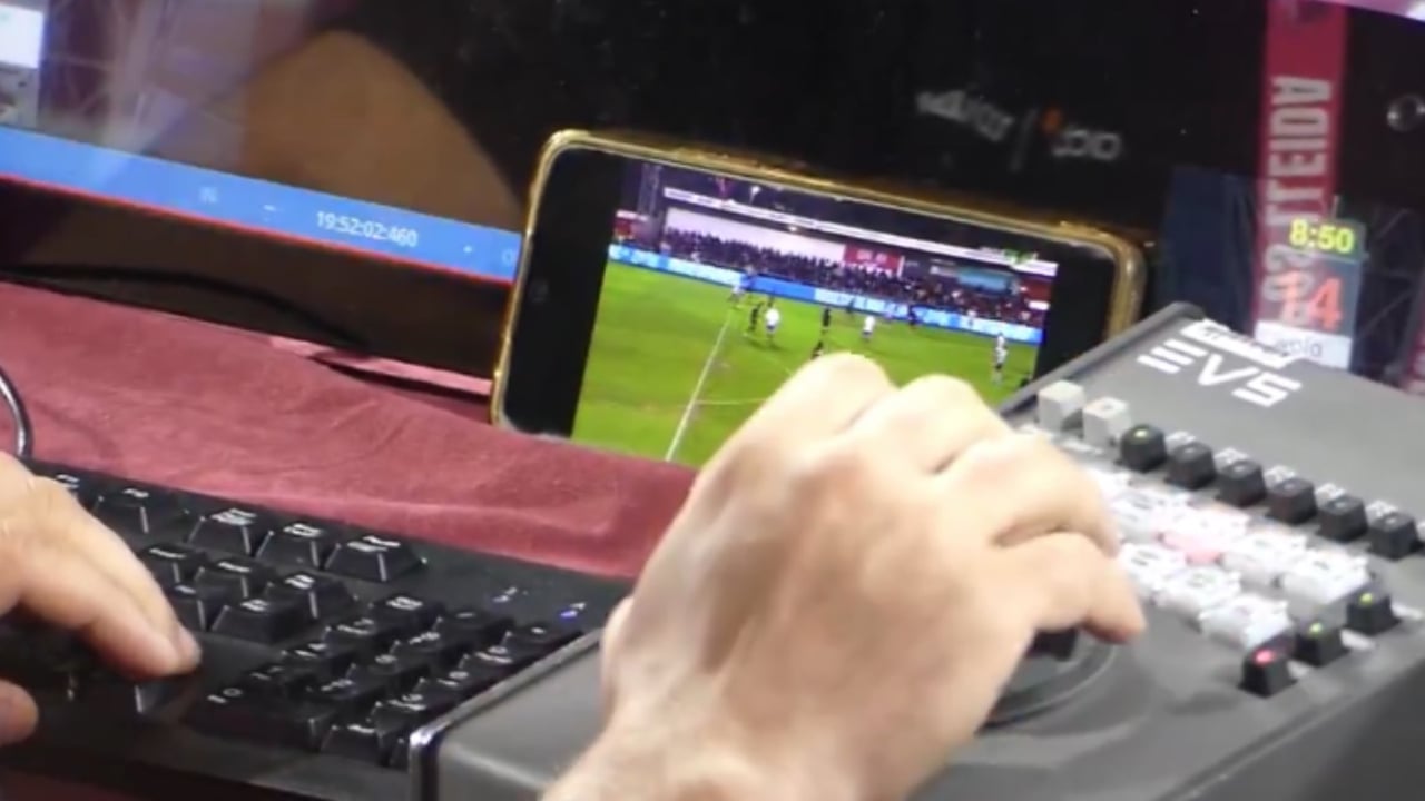 Un aficionado del pabellón grabó al árbitro controlando las cámaras del Barris Nord para analizar una jugada mientras veía en su móvil el partido del Barcelona ante el Barbastro.