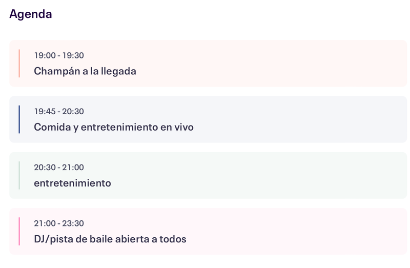 - Paquete VIP, 360€: Champán a la llegada, tres platos de comida, oportunidad de fotografiarse con la invitada, asiento reservado en la mesa VIP y bebidas ilimitadas