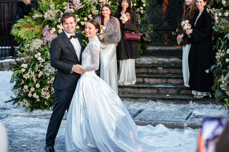 Carlsen y Malone se casaron en un día soleado y a 7 grados centígrados en la capilla de Holmenkollen de Oslo.
