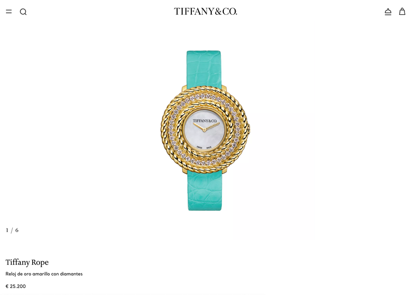 Un modelo inspirado en Jean Schlumberger, uno de los artistas con más talento del siglo XX y que cambió el mundo del diseño al unirse con Tiffany & Co. en 1956. La colección combina gemas de colores con diamantes, tejidos y diseños inspirados en la flora y la fauna. Sobre el reloj, el modelo es el Rope de Tiffany, con ese diseño trenzado característico del diseñador francés, siendo todo un ícono contemporáneo. Su precio en la web oficial de la marca es de 25.200 euros, siendo de oro amarillo de 18 quilates con 39 diamantes redondos brillantes engarzados de un total de 0,90 quilates en total, en su versión de 33 mm. La versión con la caja de 27 mm cuesta algo menos, 18.000 euros, pero lleva 38 diamantes de 0,52 quilates en total en una caja de oro de 18 quilates, siendo algo más pequeño.