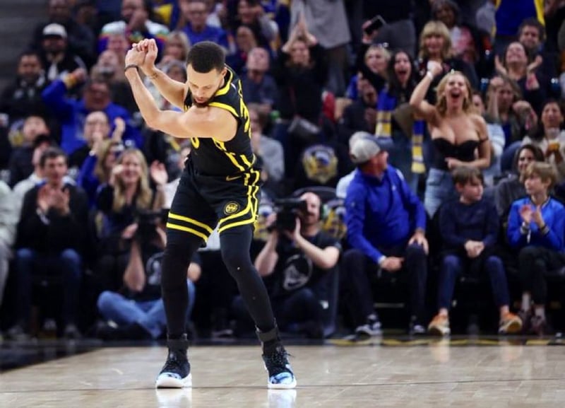 Todo surgió en el partido de la mejor liga del mundo de baloncesto que enfrentó a los Golden State Warriors con los Milwaukee Bucks, ganando la franquicia de San Francisco por 125-90 a los Bucks. Uno de los grandes protagonistas del partido fue Stephen Curry, quien anotó 29 puntos en 31 minutos en pista, celebrando una de sus canastas con un swing, un movimiento característico del mundo del golf. Esa foto ya podría ser peculiar por si misma, pero lo que realmente se ha vuelo viral ha sido lo que ocurría detrás de la estrella de los Warriors.