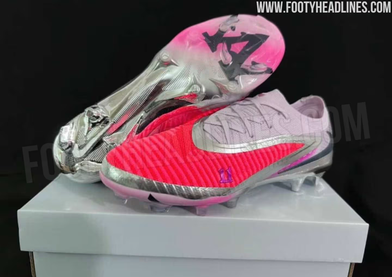 El sitio web especializado en filtraciones sobre fútbol, Footy Headline, ha ido más allá y ha filtrado el diseño de las botas de Alexia. Y su diseño es impresionante, con una combinación de colores que no pasan desapercibido. Mientras que en la puntera se puede observar un rosa rojizo bastante llamativo, en la zona de los cordones el tono cambia radicalmente a lo que parece un tono tono lila matizado. El bordeado entre el cambio de color es el plateado, que es realmente el hilo conductor del diseño.