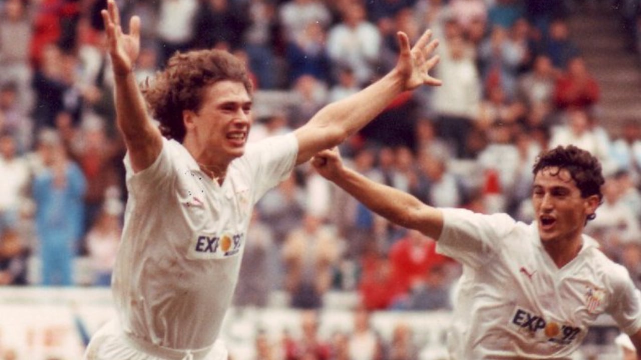 Anton Polster, celebrando un gol con el SevillaSFC