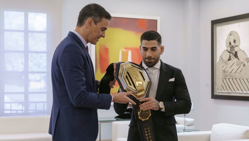 Tras superar a Volkanovski, Topuria ya dejó claro que le había "dolido" que el líder de su país no lo felicitara. Ya en España fue recibido en Madrid por las autoridades locales y regionales y, finalmente, por el presidente del Gobierno, Pedro Sánchez, el 27 de febrero en el Palacio de la Moncloa, quien le prometió la nacionalidad por su "amor a España".
