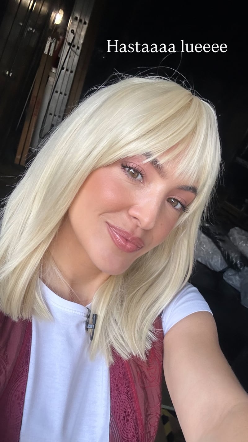 Aunque mantiene el rubio, Isabel Forner ha dejado atrás las ondas para lucir un rubio platino y cortarse el palo, el cual se ha dejado completamente liso.