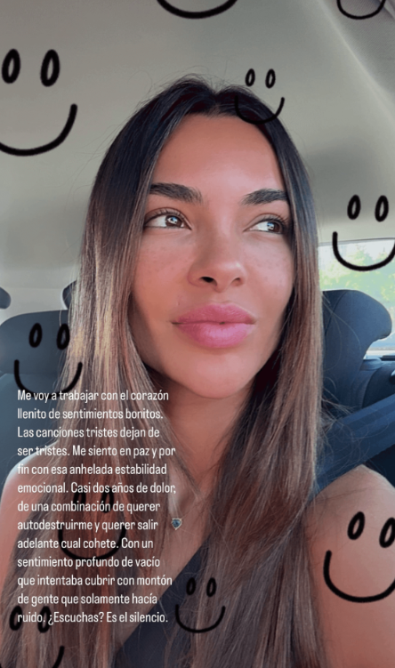 Por último, la modelo compartió recientemente un enigmático mensaje que aumenta las especulaciones. "Me voy a trabajar con el corazón llenito de sentimientos bonitos. Las canciones tristes dejan de ser tristes. Me siento en paz y por fin con esa anhelada estabilidad emocional. Casi dos años de dolor, de una combinación de querer autodestruirme y querer salir adelante cuál cohete. Con un sentimiento profundo de vacío que intentaba cubrir con montón de gente que solamente hacía ruido. ¿Escuchas? Es el silencio", escribió.