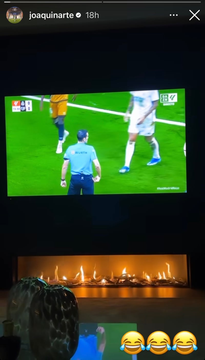 Durante el partido entre el Rayo Vallecano y el Real Madrid de este domingo, correspondiente a la jornada 12 de LaLiga EA Sports, la pareja protagonizó un divertido momento que el exfutbolista compartió a través de sus historias en Instagram. Ambos debatieron sobre las normas actuales en el fútbol, concretamente sobre el fuera de juego, algo que no gusta como está establecido a Susana, lo que aprovechó Joaquín para echarse unas risas y compartirlo con sus seguidores en la citada red social. A continuación, les mostramos la conversación completa de la popular pareja: