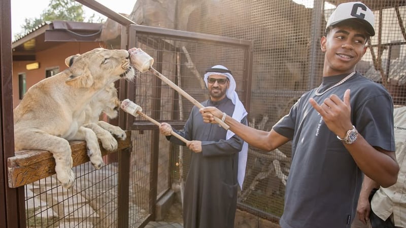 El joven talento azulgrana se encuentra disfrutando de unos días de relax en Dubái, donde ha tenido la ocasión de visitar un zoológico de una manera bastante peculiar y privada, pudiendo alimentar a varios animales como leones o tigres. No son iguales, pero estas vacaciones de Lamine Yamal recuerdan a las que pasó allí el ex de Sevilla y Real Madrid Mariano Díaz, quien también estuvo con leones, aunque de una manera diferente.