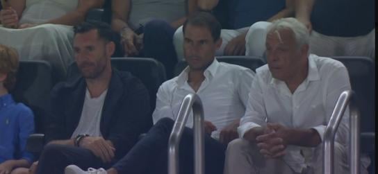 Nadal coincidió en el palco de Son Moix con Rudy Fernández, quien realizó el saque de honor del encuentro con motivo de su retirada del baloncesto.