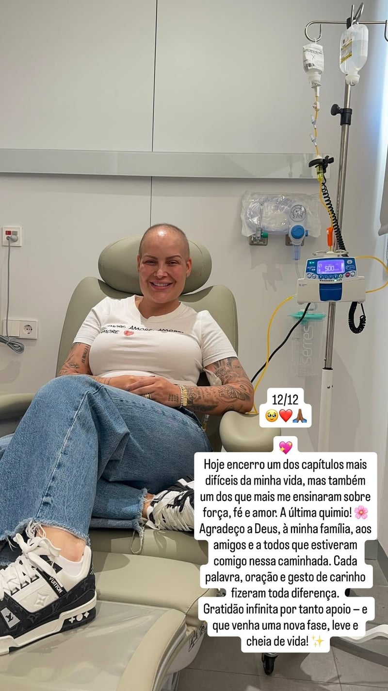 "Hoy cierro uno de los capítulos más difíciles de mi vida, pero también uno de los que más me enseñaron sobre fuerza, fe y amor. ¡La última quimioterapia! Y agradezco a Dios, a mi familia, a mis amigos y a todos los que estuvieron conmigo en esta caminata. Cada palabra, oración y gesto de cariño marcaron toda la diferencia. Gratitud infinita por tanto apoyo. ¡Y que venga una nueva etapa, ligera y llena de vida!", escribía en una de sus 'stories' de Instagram la afortunada protagonista, que aparca, ojalá que definitivamente, una horrorosa experiencia vital y despeja los negros nubarrones que se cernían sobre la familia del central brasileño, que también mostraba su entusiasmo: "Muchas gracias a Dios. Agradecemos sinceramente la generosidad de la familia del Sevilla FC durante este proceso. Siempre permanecerá en nuestros recuerdos".