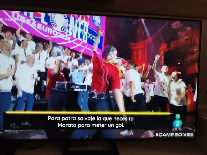 Al recordar la celebración en Madrid de la Eurocopa que ganó España, pusieron un trozo de la actuación de Isabel Aaiún y su Potra Salvaje, cuyo rótulo sirvió para 'atacar' al futbolista. "Para potra salvaje la que necesita Morata para meter un gol", decía dicho rótulo.